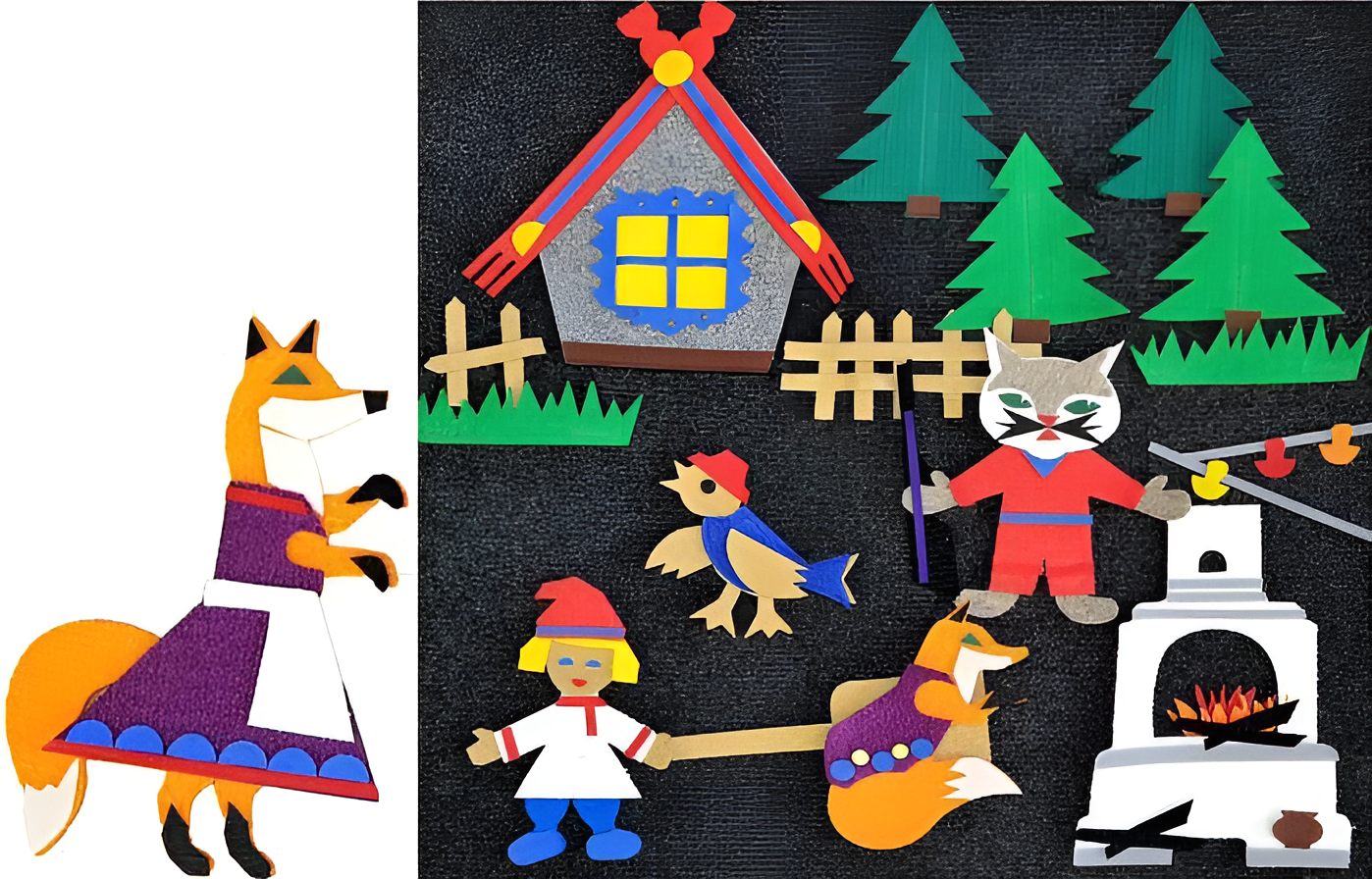 Персонажей и дополнительные элементы (печка, домик, деревья и др.) можно располагать в любом месте игрового поля. Благодаря этому ребенок может проиграть полный сюжет сказки. Герои как будто оживают и перемещаются по полю, создавая реалистичный сюжет.