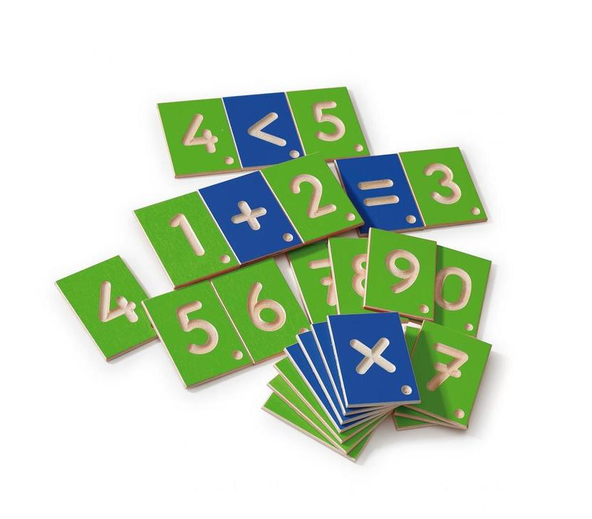Набор состоит из 29 элементов, с помощью которых происходит знакомство ребенка с основами математики (цифрами, счетом, сложением и вычитанием). Может применяться также при обучении детей с ДЦП и нарушением зрения.