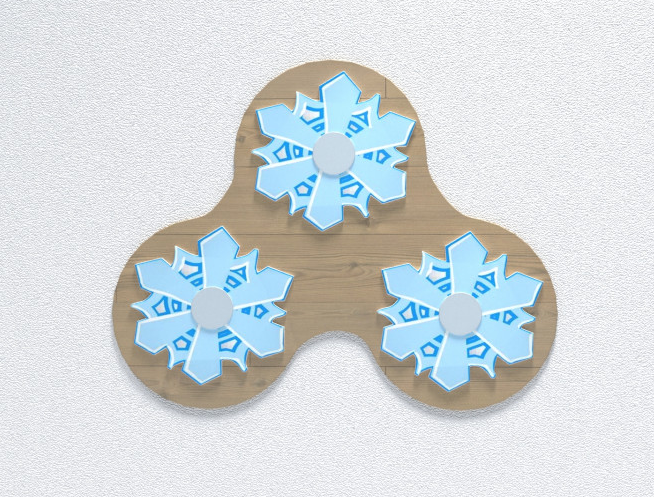 Настенная панель в виде снежинки является дополнением к комплекту настенных панелей «Фабрика мороженого». Не может выступать в качестве самостоятельного модуля из-за отсутствия собственной игровой ценности. Вместе с комплектом настенных панелей «Фабрика мороженого» они образуют игровой дидактический набор для детей от 1 года. Основа настенной панели «Снежинка» выполнена в абстрактной форме и окрашена в тон светлой древесины; поверх основы прикреплены узорчатые снежинки бело-голубых оттенков.